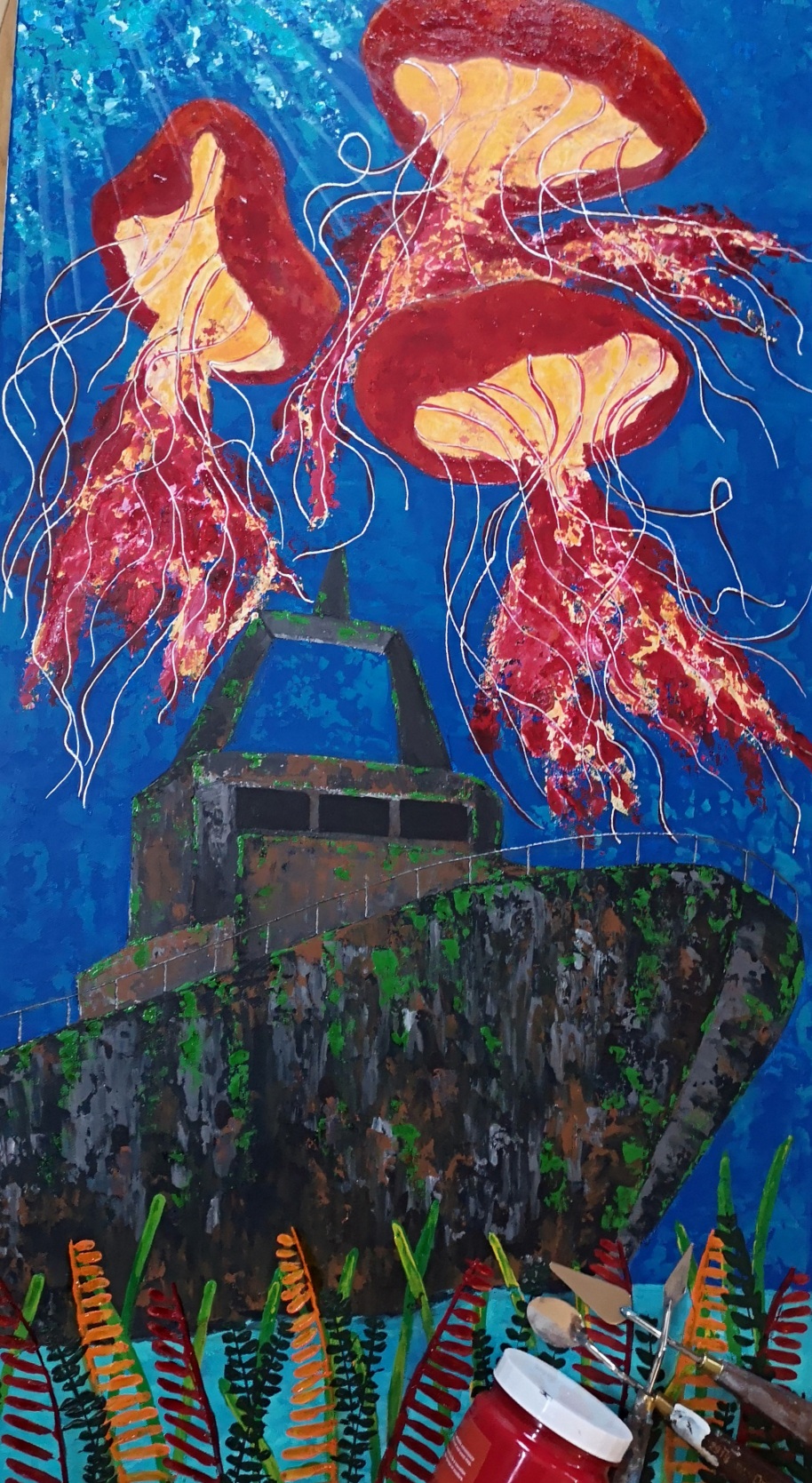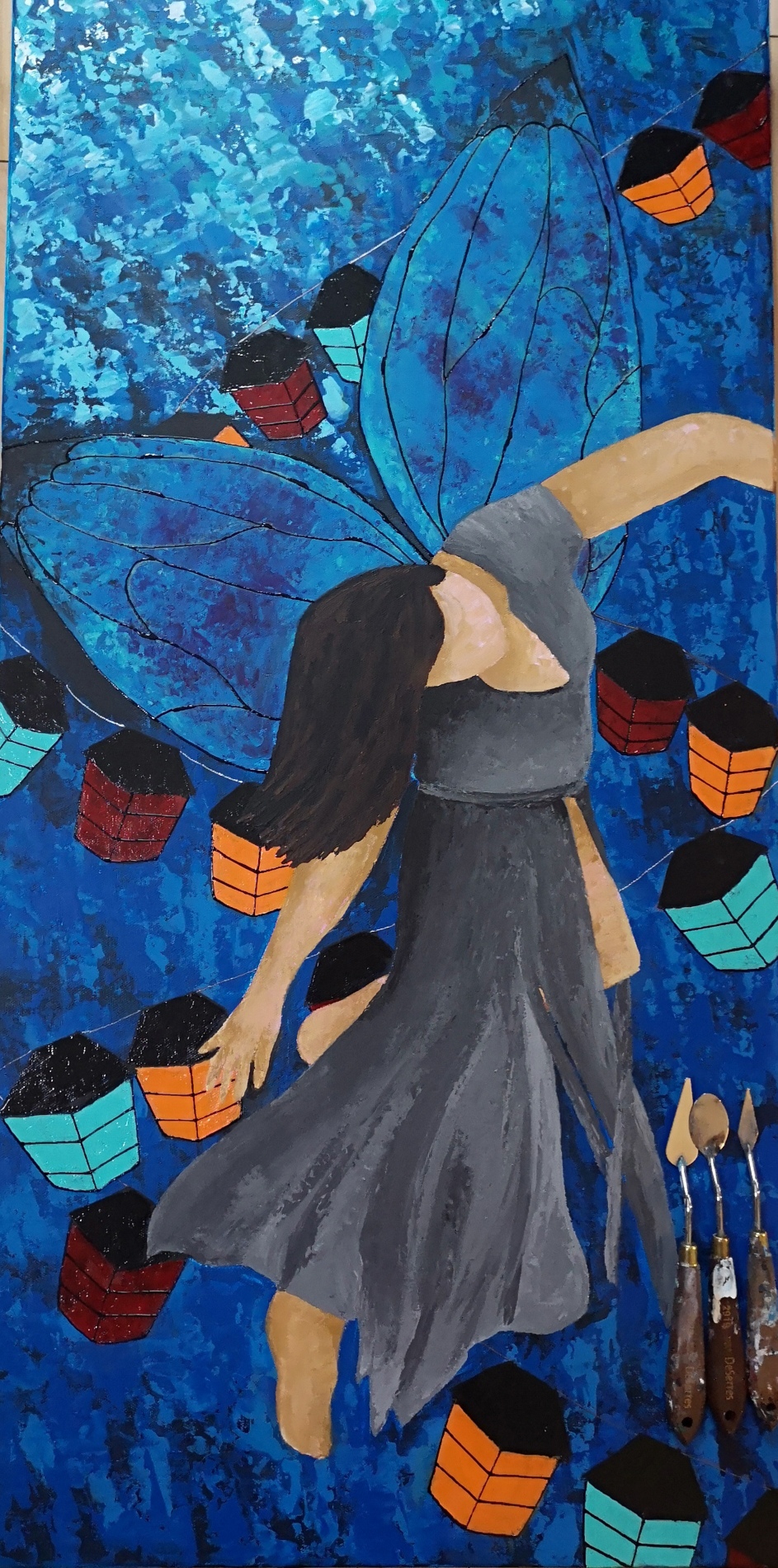 Artiste contemporaine moderne incapable de reproduire des images, Hélène laisse son imaginaire, ses émotions et son ressenti s’exprimer sous les coups de pinceaux et de spatules de son acrylique et vitrail (pour les toiles marines), nous permettant ainsi de nous offrir un portrait de la femme forte et moderne ou la paix inévitable de l’eau et son habitat.